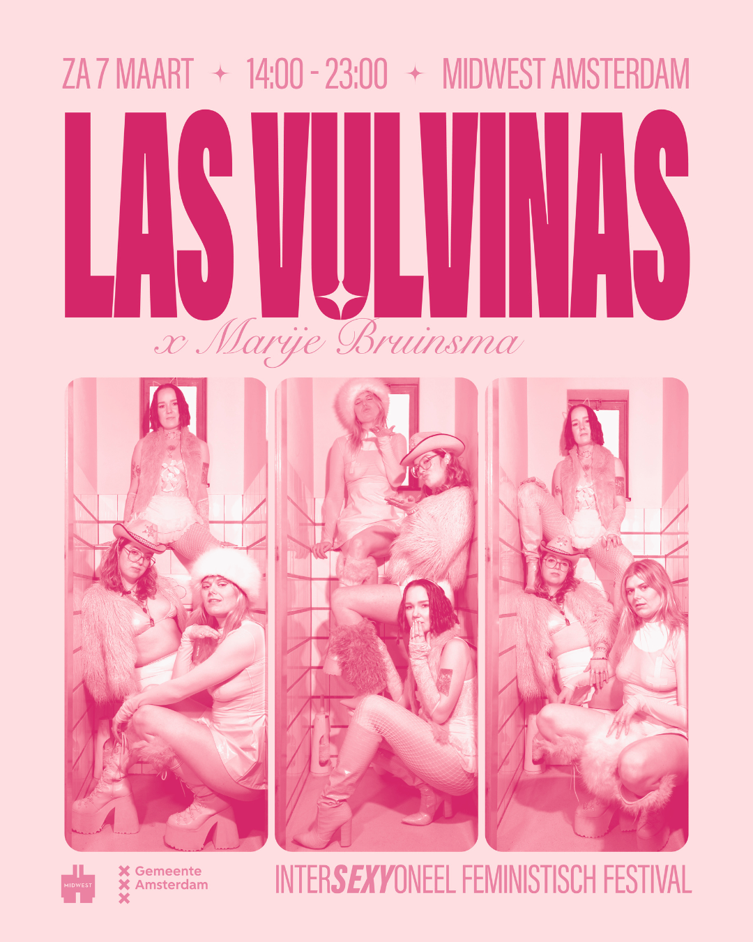 The LAS VULVINAS X MARIJE BRUINSMA FESTIVAL is a one-day literary, feminist and cultural festival at Midwest Amsterdam. Spoken word, performance art, pleasure, craft, humor, hope, and activism come together in a theatrical, energetic, challenging, and playful form. This event occurs the day before the Feminist March (March 8, 2026) in the Baarsjes neighborhood of Amsterdam at the venue Midwest.